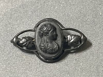 735 Carved Oval Black Cameo Brooch with Profile Relief Design