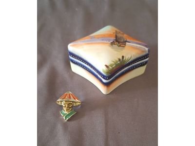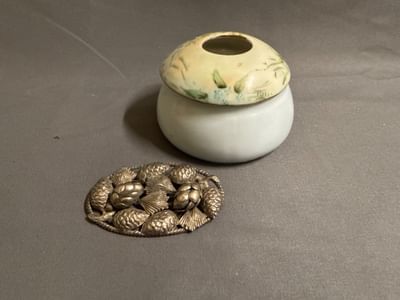 705 Hand-Painted Bavaria Porcelain Lid and Holder with Metal Gold-Tone Floral Brooch