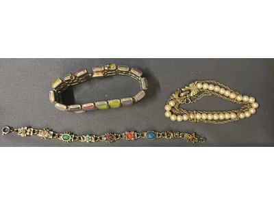 663 Set of Three Metal Charm Bracelets with Various Embellishments