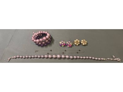 64 Silver-Tone Brooch with Purple Center Stone and Faux Pearl Bracelet