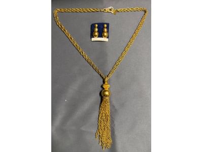 60 Gold-Tone Tassel Necklace and Matching Earrings Set by Roger TM