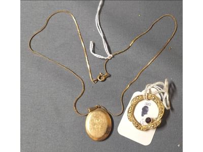 702 Gold-Tone Locket Pendant Necklace and Two Pairs of Stud Earrings