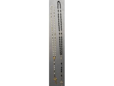 655 Two Beaded Rosaries with Crucifixes, One Black Beaded and One Clear Beaded