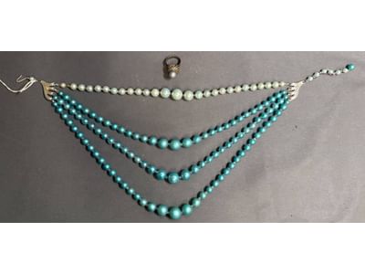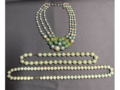66 Set of Three Beaded Necklaces in Green and Blue Tones