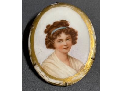 67 Oval Porcelain Brooch with Hand-Painted Portrait and Gold-Tone Frame