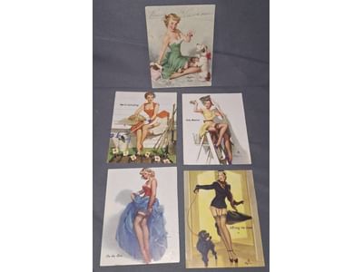 673 Five Ink Blotter Pin-Up Prints Signed by Various Artists 3x4in