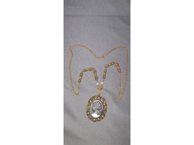 700 Gold-Tone black Cameo Pendant Necklace With Chain