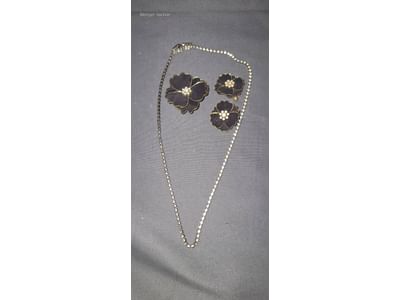 664 Floral-Themed Jewelry Set with Necklace, Earrings, and Brooch