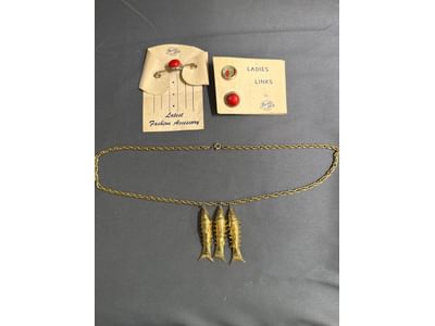 717 Gold-Tone Necklace with Fish Pendant and Ladies Links by Barclay