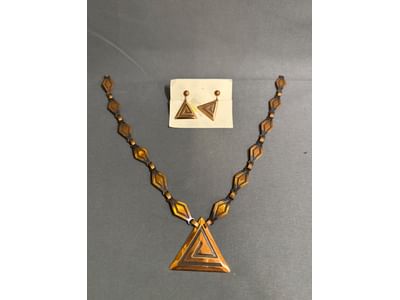 728 Copper-Tone Geometric Necklace and Earrings Set
