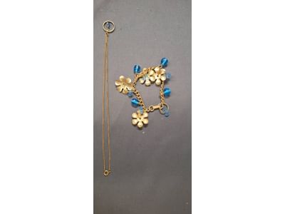 734 Gold-Tone Chain Bracelet with Flower Charms and Blue Beads