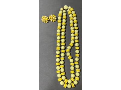 63 Yellow Beaded Jewelry Set with Necklaces and Clip-On Earrings
