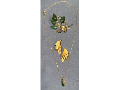 653 Coro Gold-Tone Necklace, Bracelet, and Earrings Set with Leaf Motif