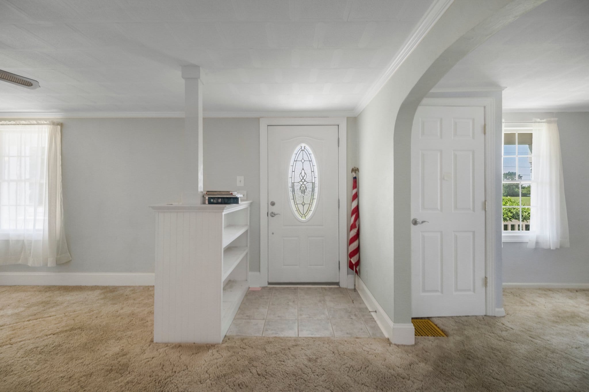 Nestled on 4.6+/- acres of countryside, this charming 3-bedroom, 1.5-bath home offers a perfect blend of comfort and nature. As you enter through the spacious living room, you'll be led to a delightful sunroom through French doors, providing a bright and inviting space to relax and enjoy the views. The main bath boasts a double vanity and a luxurious walk-in tiled shower. The galley-style kitchen is functional and efficient, making meal preparation a breeze. The master bedroom, conveniently located on the main floor, includes a cozy window seat, perfect for curling up with a good book. Upstairs, you'll find two additional bedrooms, each equipped with walk-in closets, offering ample storage space. The home also features a large laundry room with cabinetry. Outside, enjoy the fresh air on the back deck, overlooking the wooded acreage behind, providing a peaceful backdrop for outdoor gatherings. A two-car detached garage adds convenience and extra storage for your vehicles and tools. This property is a true haven for those seeking tranquility and space in a beautiful country setting.