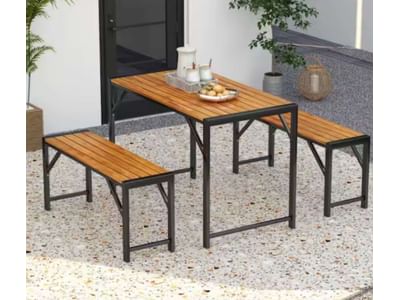 113 Noble House Teak Finish Acacia Wood 2 seat right and left arm Outdoor Patio Lounge Chairs with Cream Cushion