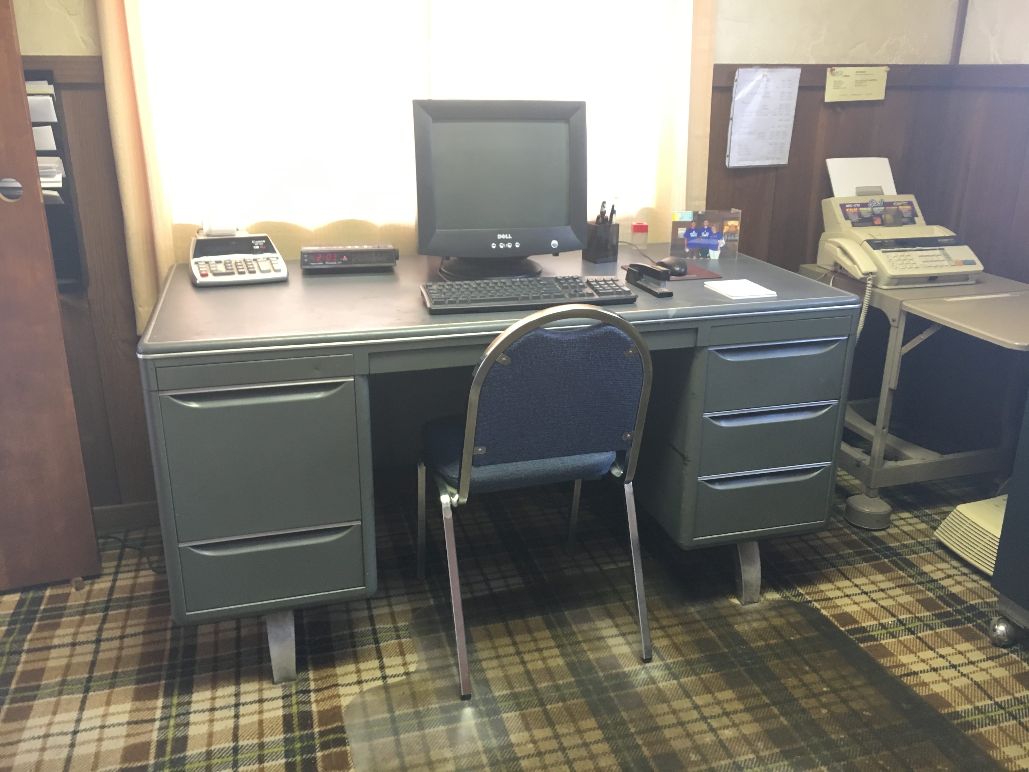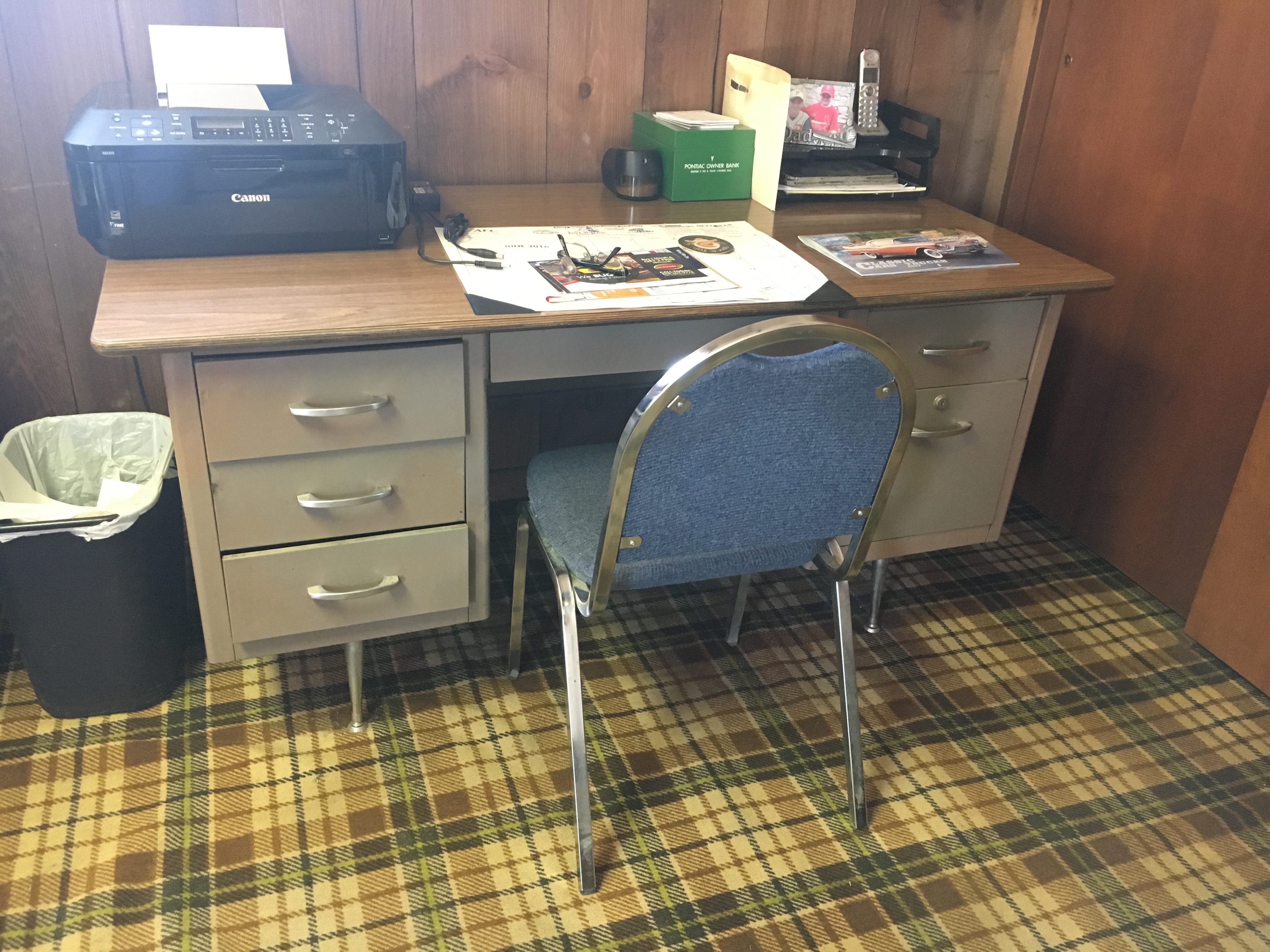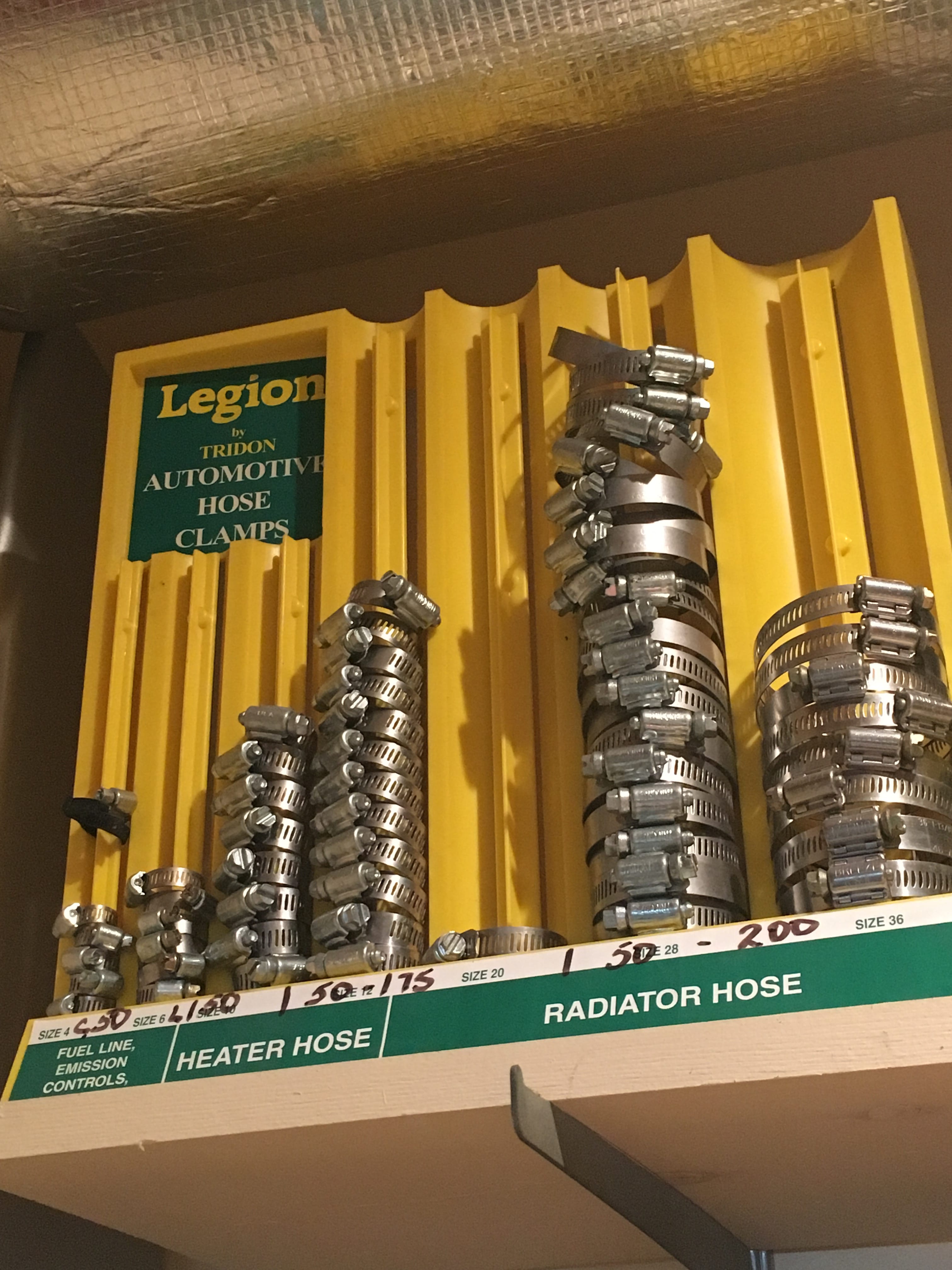 Wagner Lighting Display; Napa Balkamp Automotive Fuses Display; Prostripe Display Cabinet; Legion Auto Hose Clamps Display; AC Delco Clock; No Parking Sign; Vintage Schwinn Bike; Galvanized Oil Cans; OFFICE: Office Desks & Chairs; File Cabinets; Desk Lights; Leather Sofa & Chairs; Office Equipment; Stack Chairs; Stereo System; Water Dispenser;