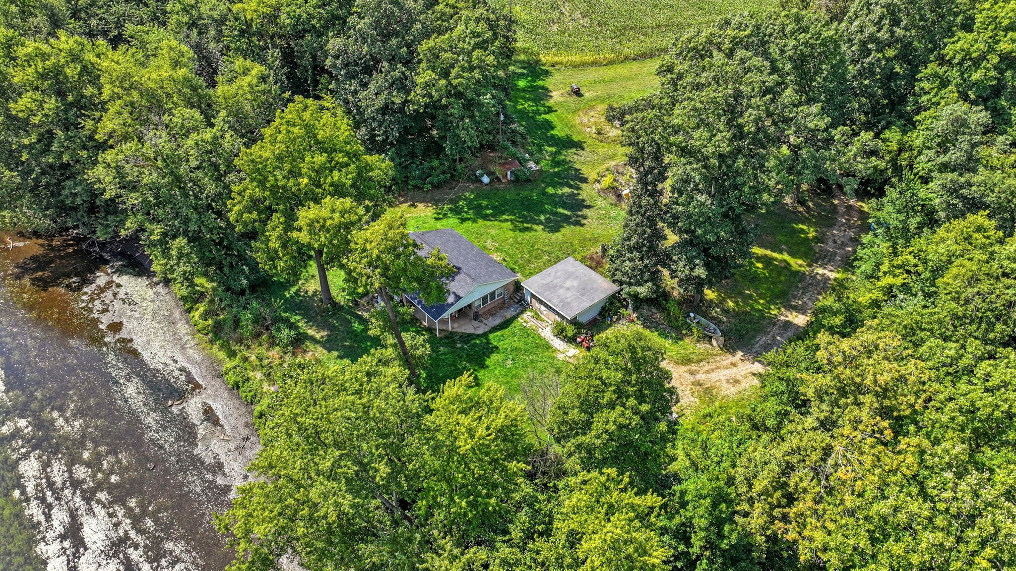 Secluded One-Story Home nestled back on 7.1+/- Riverfront Acres!