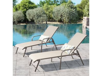 311017 CRESTLIVE PRODUCTS - 2-Piece Aluminum Adjustable Outdoor Chaise Lounge in New Beige with Armrests
