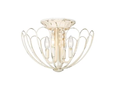 311025 GOLDEN LIGHTING - Marguerite 13.25 in. 4-Light Vintage Parisian White Semi-Flush Mount