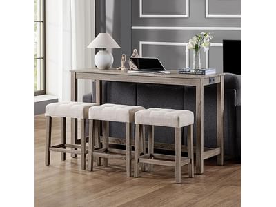 321014 DUHOME - 4 Piece Bar Table Set with Power Outlet,Industrial Breakfast Table with 3 Padded Stools Solid Wood Counter Height Dining Table