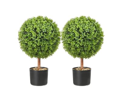 321064 VEVOR - Artificial Topiaries Boxwood Trees 22 in. Green Artificial Boxwood Topiaries With Containers Ball-Shape Plant, (2-Piece)