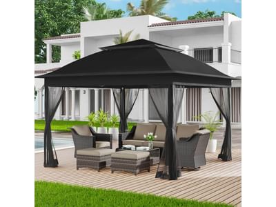 321001 HAMPTON BAY - Providence Place 11 ft. W x 10 ft. D Brown Hard Top Gazebo