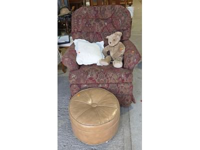 550000 Rolling Foot Rest and Red Swivel Chair 12”x17”, 35”x32”x30”