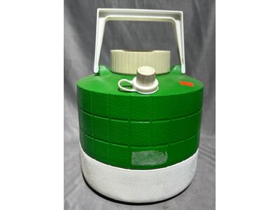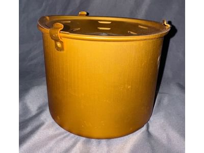 6015 Green Enamel Kettle with Hinged Lid Originating from the Winona Cafe in Akron, IN, 3?x2.5?