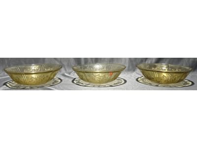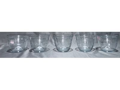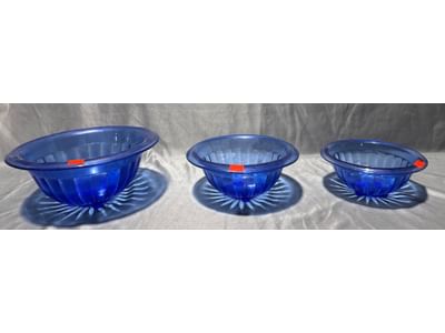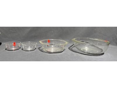 6007 Pyrex Glass Bowls with Markings, Sizes 3.5”x2”, 7”x2.5”, 9”x3”