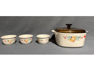 6008 Corelle Cookware with Lids and Bowls, 2”x4” and 8.5”x4”