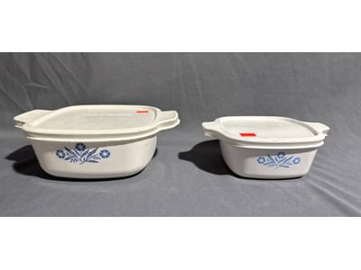 6009 CorningWare Blue Cornflower Baking Dishes with Lids, 9”x3” and 7”x2.5”