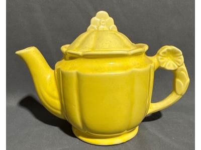 6014 Shawnee Pottery Yellow Teapot with Floral Handle, 4.5”x6”