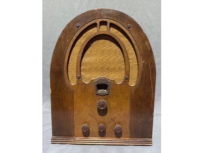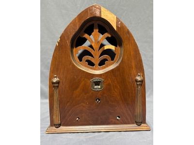 6030 Cathedral-Style Radio Case Inc. Aerovox Filter Condenser, 18”x15”x10.5”