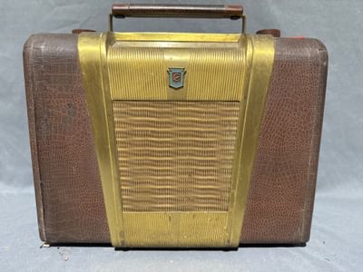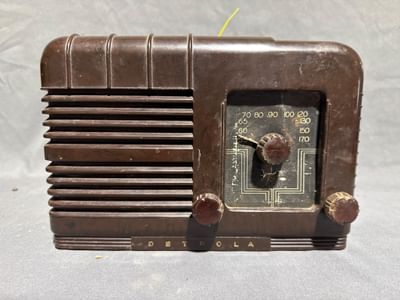 6038 Detrola Tube Radio in Brown Case, 7”x10”x6.5”