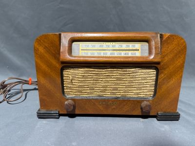 6035 Philco Tabletop Radio with Bakelite Case, 7”x11”x6”