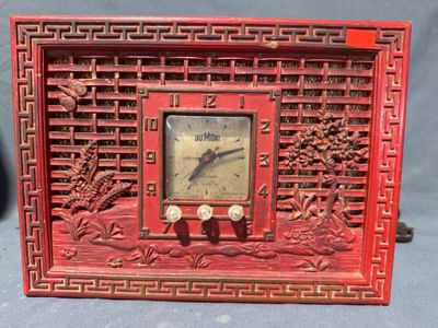 6042 Red DuMont Model RA-346 Clock Radio, 11”x8”x5”