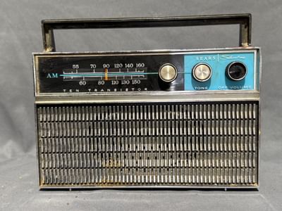 6046 Sears Silvertone Ten-Transistor Portable Radio with Handle, 10.5”x4.5”x8.5”