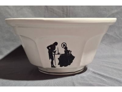 6055 Harker Chinaware Hotoven Bowl with Black Silhouettes and Pour Spout 9.5?x4.5? (crazing)
