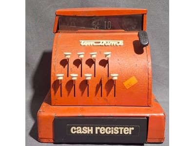 6062 Tom Thumb Toy Cash Register with Metal Body and Plastic Drawer 7.5?x6?x7.5? (dented & rusted)
