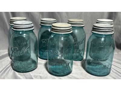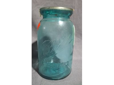 6068 Blue Ball Standard Glass Jar with Metal Lid 3?x7? (tape marks)