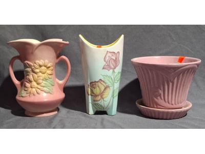 6071 Hull Art Pottery Vase (chipped), Footed Vase and Pottery Planter 5.5?x7? – 6?x5?