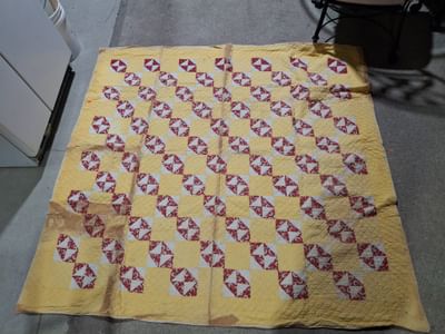 6072 Hand-Stitched Quilt with Red and Yellow Geometric Pattern 70?x74?