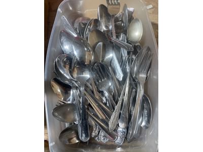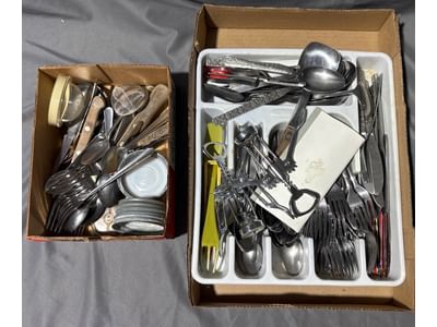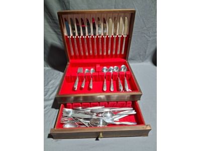 6073 Flatware Storage Box with World Stainless and Stainless Steel Flatware 14.5?x11?x5? (box scratched)