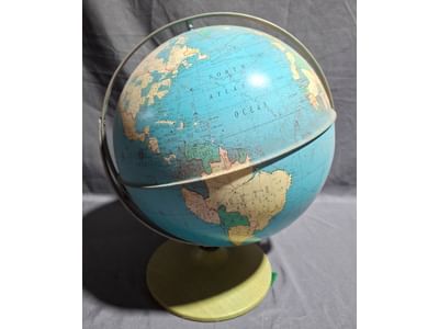 6076 Mid-20th Century Globe with Metal Axis and Base 14?