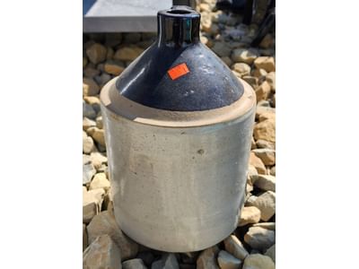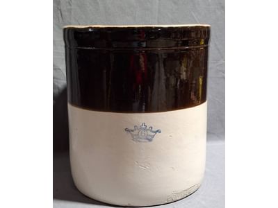 6079 No. 6 Crown Two-Toned Stoneware Crock with Blue Crown Mark 12.5?x14.5? (imperfections in glaze)