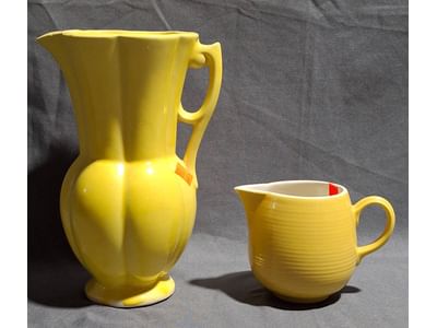 6085 Yellow Pitcher and Creamer, Marked ‘USA’ 4? & 9? Hgt. (Creamer chipped)