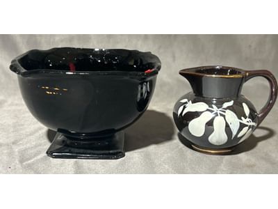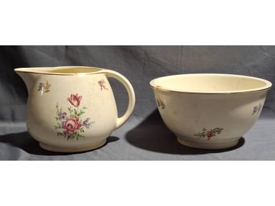 6086 Priscilla Ovenware Pitcher and Bowl with Floral Design 8?x5.5? & 8.5?x4.5?
