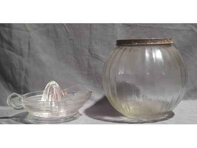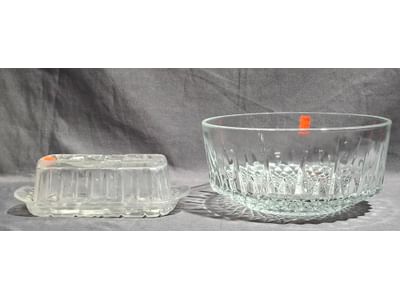 6088 Glass Butter Dish and Clear Glass Bowl with Starburst and Patterned Details 7.5? & 7.5?x4?