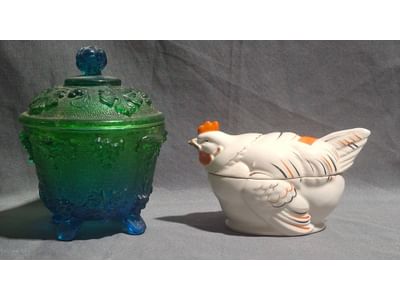 6010 Crown Ovenware Covered Dish & Teleflora Candy Dish, 7.5”x3” and 4.5”x6.5”