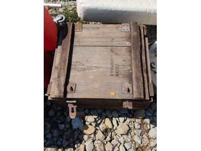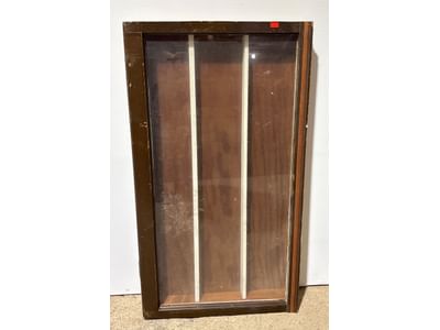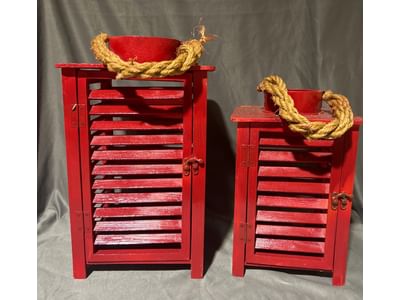 9651 Red Painted Storage Box with Glass Panel and Handles 24”x9.5”x16”